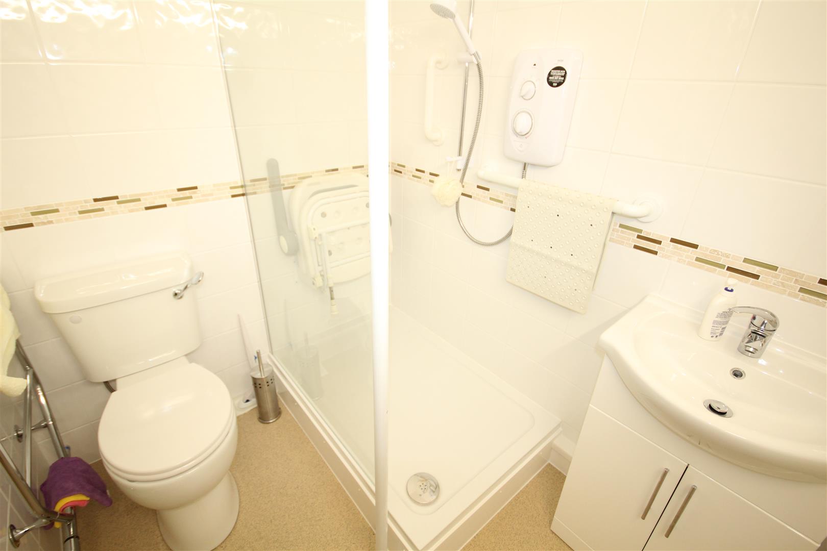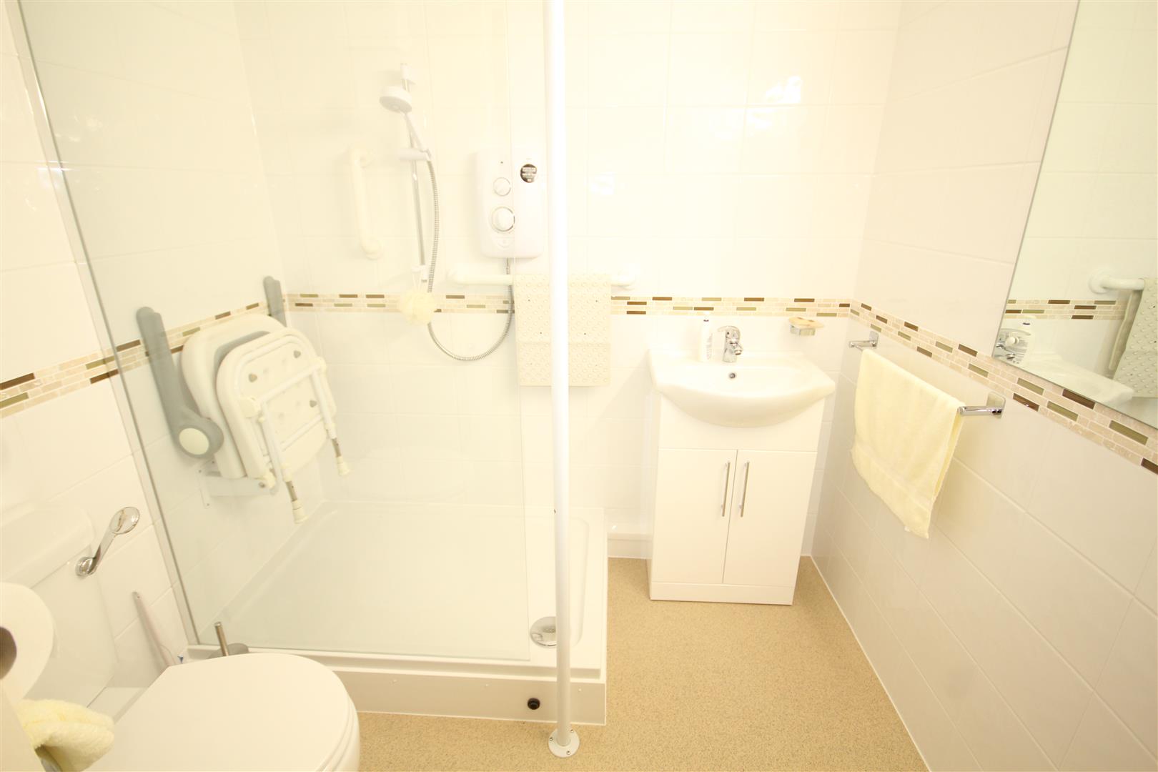 Lift, Large Communal Lounge, Laundry, Guest facilities, Well Kept Gardens, Guest Kitchen. Apartment 20 is on the First Floor and enjoys a pleasant outlook over Marine Road within a short walk of the town centre, the beach and promenade. The Apartment affords HALL, WALK IN STORE, LOUNGE DINING, KITCHEN, BEDROOM, LOVELY MODERN SHOWER ROOM, DOUBLE GLAZING, ELECTRIC HEATING. Leasehold for 125 years from 1988. Awaiting EPC Council Tax Band B Ref CB7697