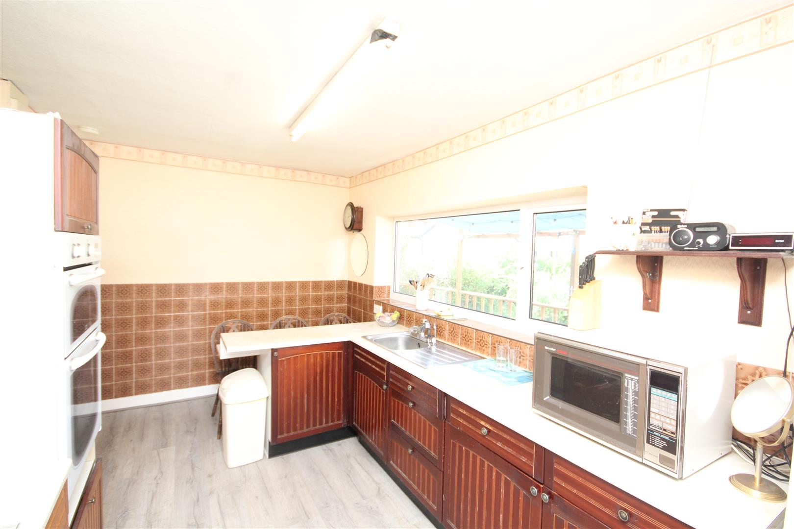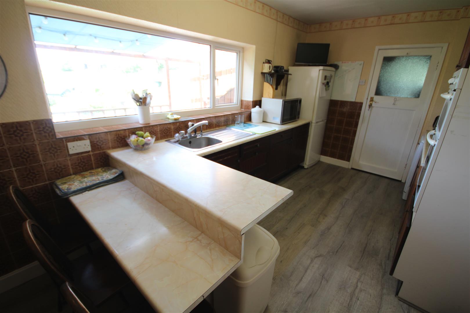 Kitchen Breakfast Room - 4.6 x 2.6 (15'1" x 8'6") - Double glazed window overlooking the lovely gardens and the distant hills and Conwy Castle, base cupboards and drawers with marble effect work top surfaces, peninsular cupboard breakfast bar, part tiled walls, stainless steel sink unit, central heating radiator, 4 ring gas hob unit, double oven, dishwasher