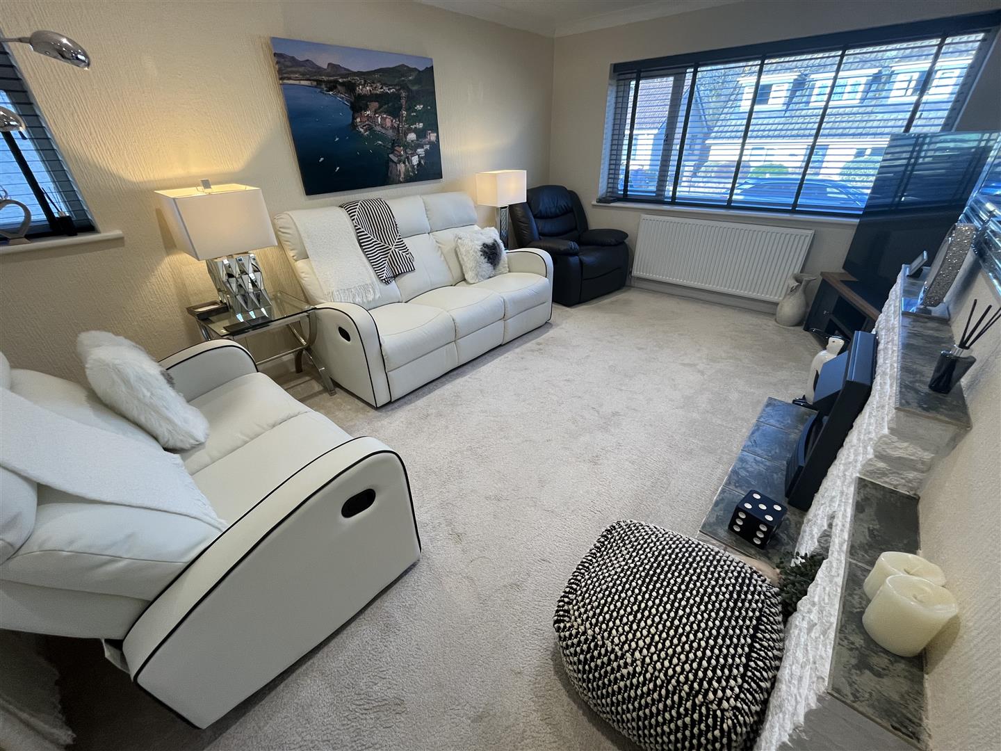Lovely Lounge - 4.6 x 3.6 (15'1" x 11'9") - Double glazed window to front aspect and side, stone fireplace and side plinth with electric fire, central heating radiator, coved ceilings