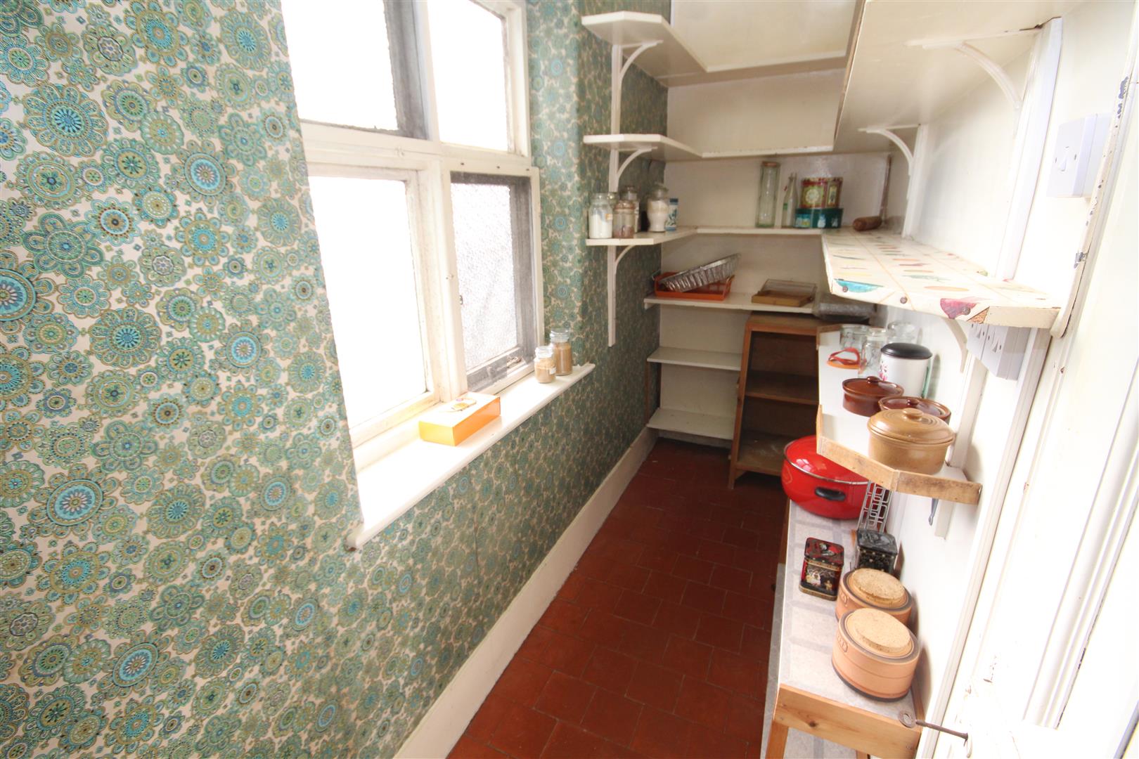 Breakfast Morning Room - 5.7 x 4 (18'8" x 13'1") - Gas fire, double glazed, cupboards in alcove, central heating radiator, long walk in pantry with shelving and tiled floor. access to Cellar Room 5.7m x 4.1m access to garden