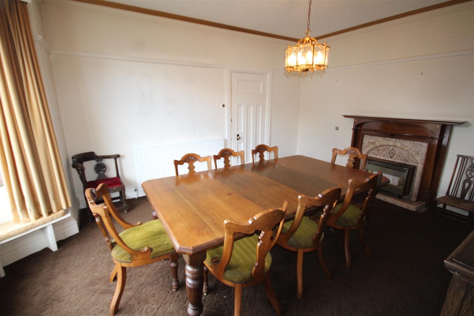 Dining Room - 5.5 x 4.2 (18'0" x 13'9") - Picture window to front aspect and seating, central heating radiator, decorative frieze, inlaid mahogany fireplace with tiled back and gas fire