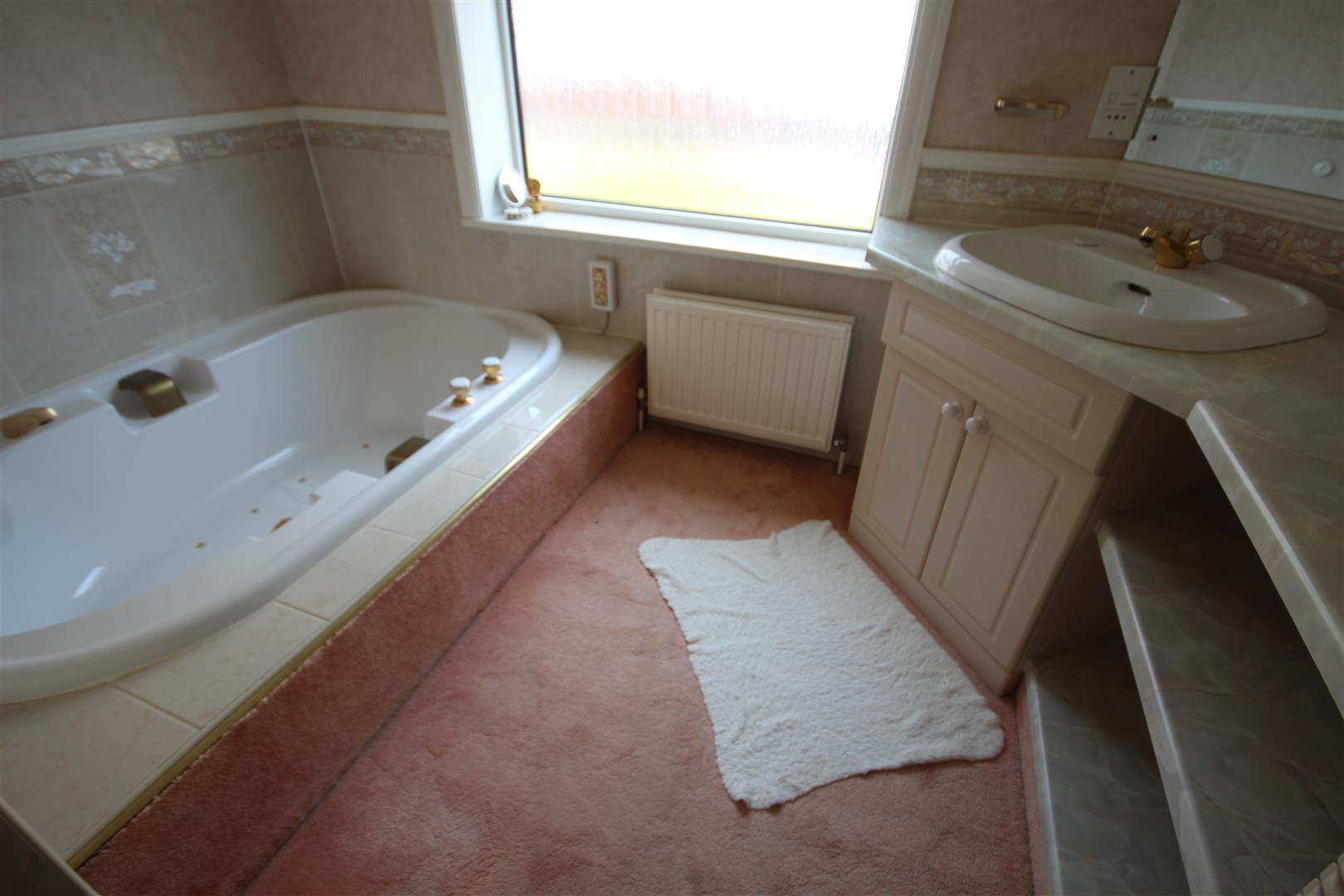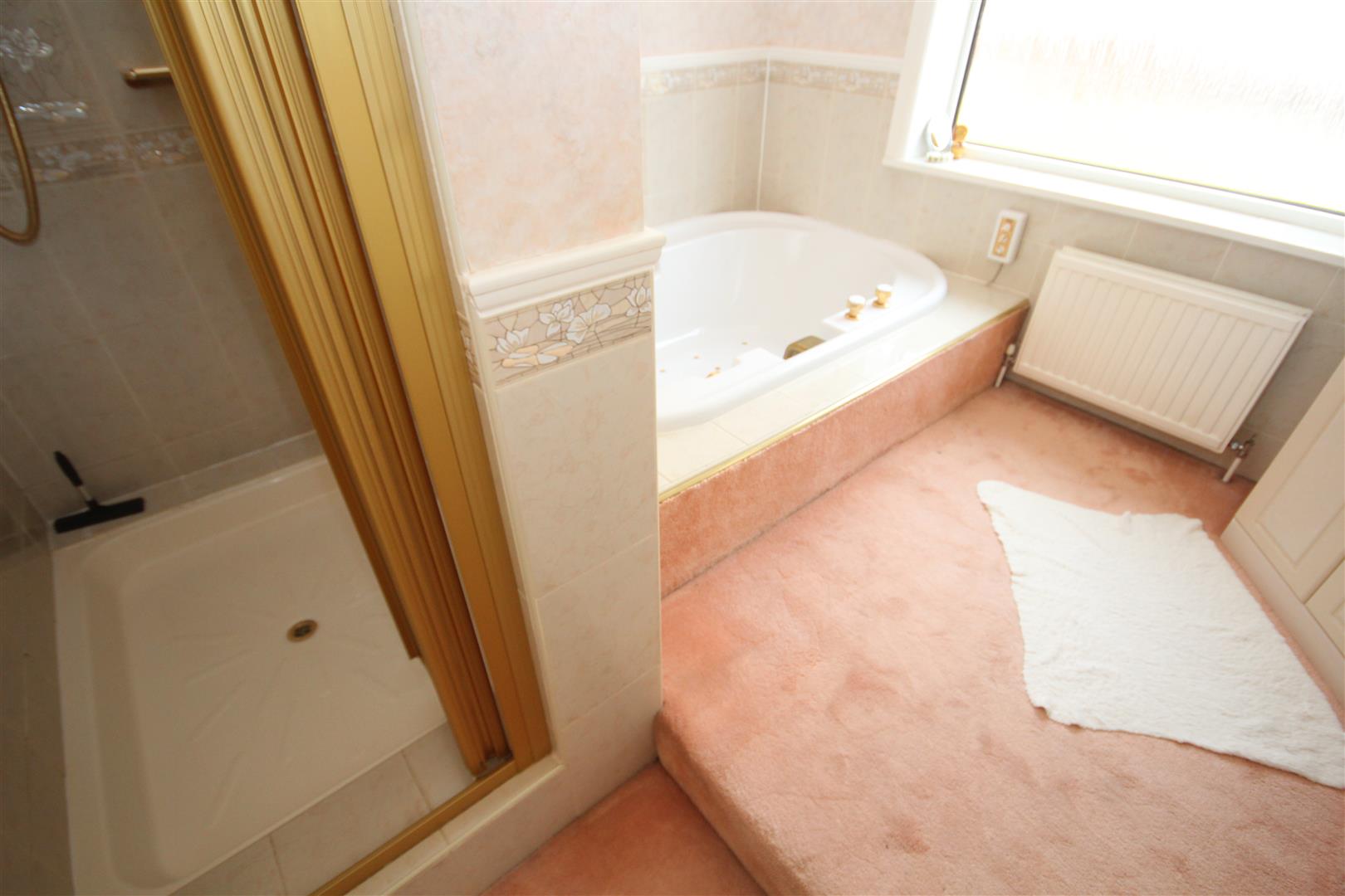 Jacuzzi Bathroom - 2.9 x 2.9 (9'6" x 9'6") - Sunken jacuzzi bath, vanity wash hand basin, central heating radiator, double glazed, half tiled walls, shower cubicle and unit, heated towel radiator, Separate w.c, central heating radiator