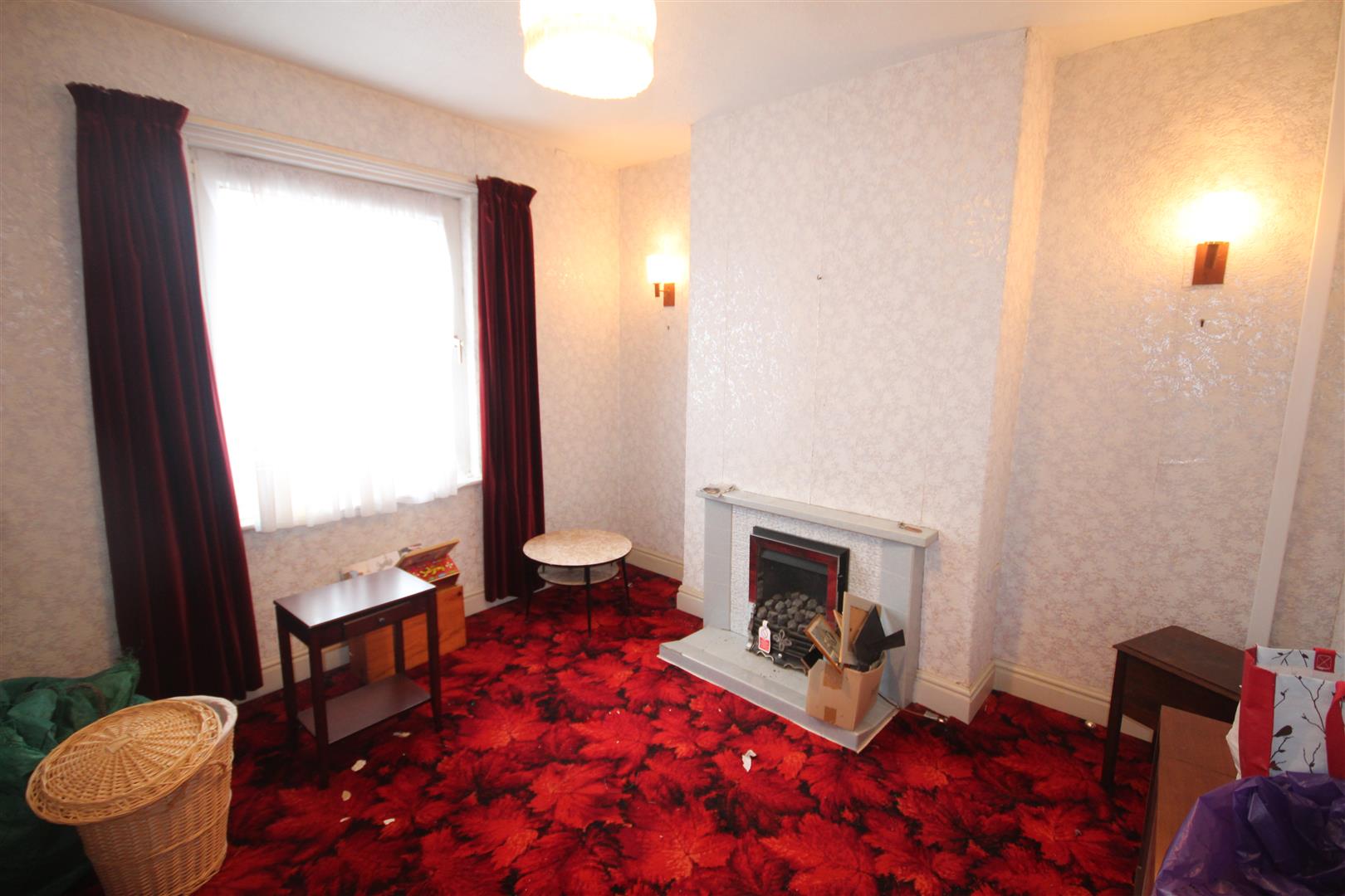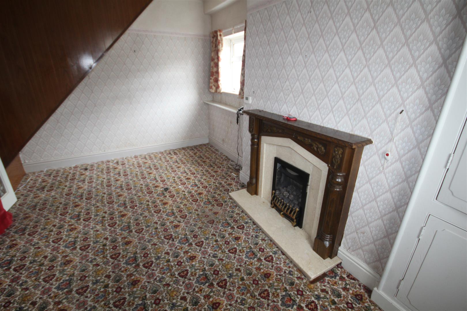 Living Room - 4.19m x 3.53m (13'9 x 11'7) - Fireplace surround with marble back and hearth, coal effect fire, 2 double glazed windows, central heating radiator, double door cupboard
