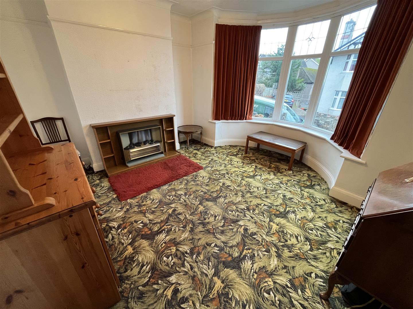 Front Lounge - 4.1 x 3.9 (13'5" x 12'9") - Double glazed bow window, fireplace surround and electric fire, coved ceiling