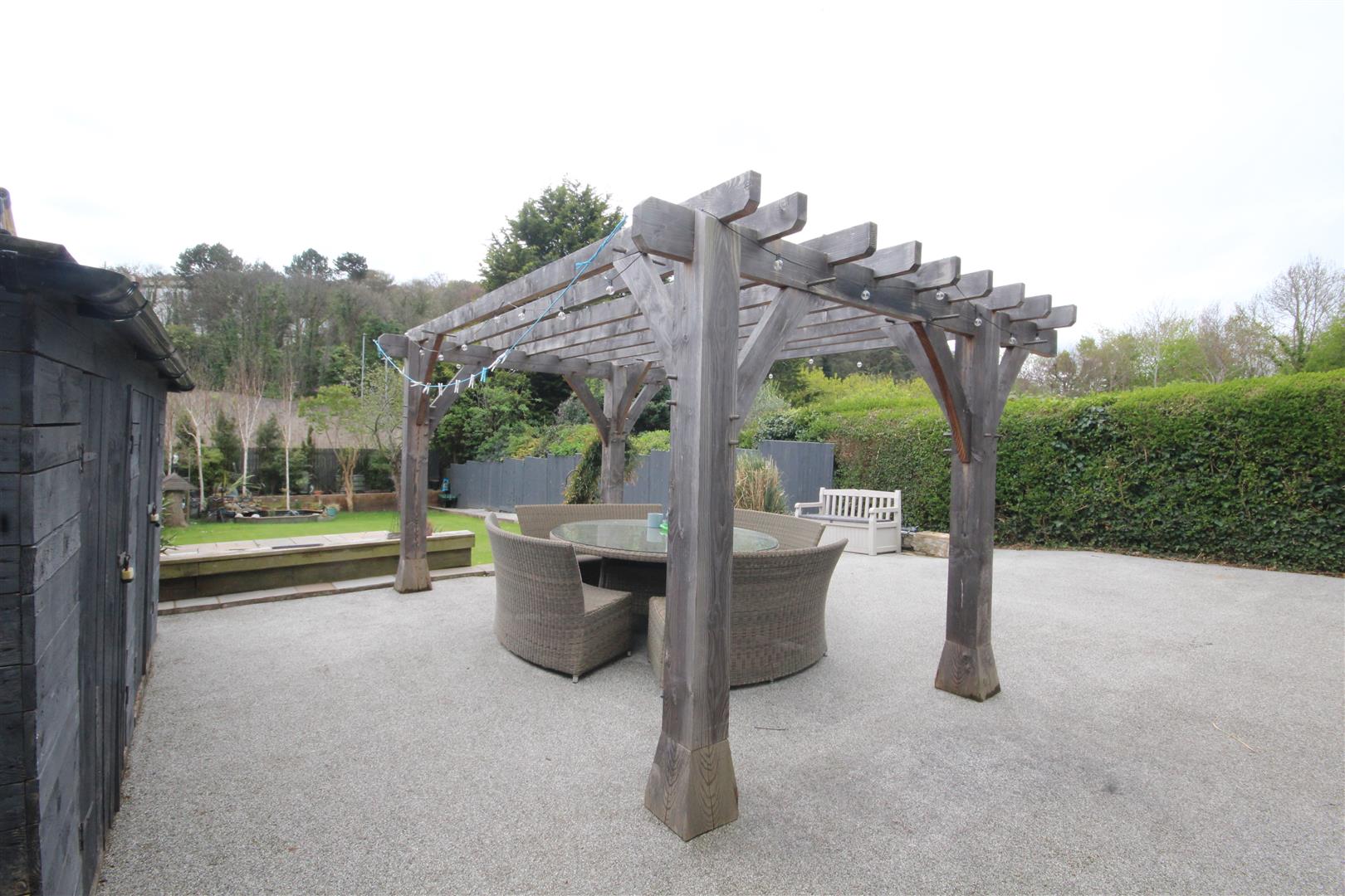The Gardens - The property has a southerly aspect at the back of the house, laid to lawn with borders and hedges and fencing providing the boundaries, Green House. From the back of the house steps lead up to the Balcony Terrace with wrought iron balustrading