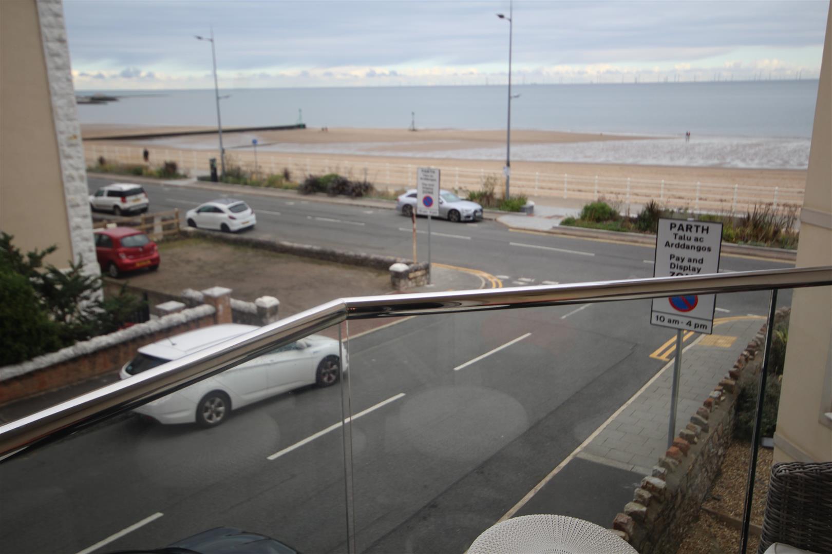Open Plan Lounge Dining - 4.8 x 4.6 (15'8" x 15'1") - Double glazed door to balcony with glass balustrading, 2 x double glazed windows, two central heating radiators, television point. Balcony looking down Penrhos Road to the promenade and the lovely beach and promenade