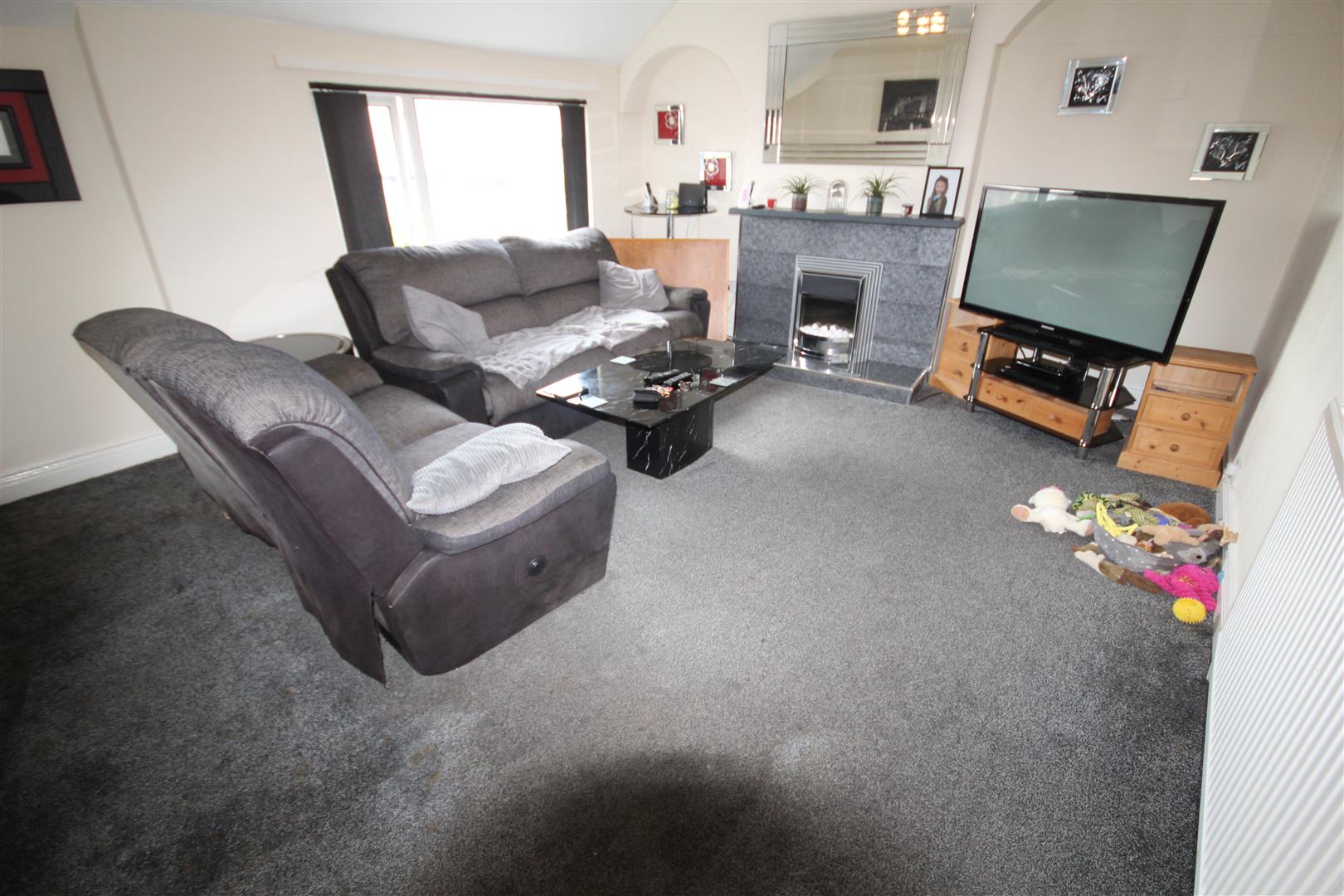 Spacious Lounge - 5.2 x 4.09 (17'0" x 13'5") - Double glazed window having a pleasant outlook to the wooded hillside, fireplace surround with electric fire, central heating radiator
