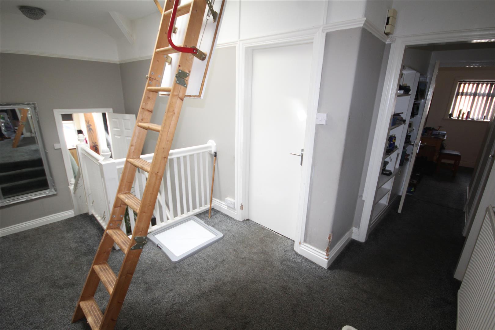 Entrance - Communal Hall, stairs to First Floor, Door and Stairs to Top Flat, Large Landing, central heating radiator,, double glazed velux window