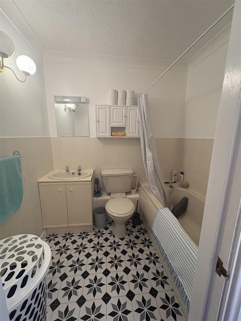 Bathroom - Panel bath, Redring shower unit, half tiled walls, w.c, wash hand basin, coved ceilings, Dimplex heater