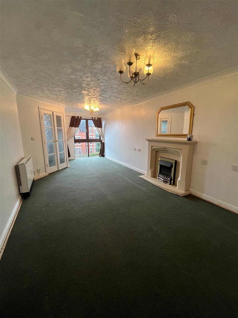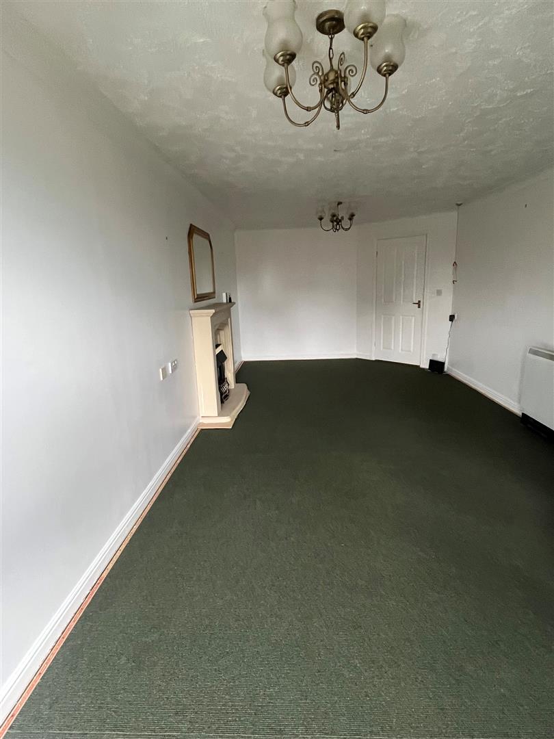 Large Lounge/Dining Room - 5.79m 2.13m' x 3.05m 1.52m' (19' 7'' x 10' 5'') - Wall mounted electric storage heater. Coved ceiling. Feature fireplace with inset coal effect electric fire. Television aerial point. Front aspect sealed unit double glazed window. Double doors opening into:-