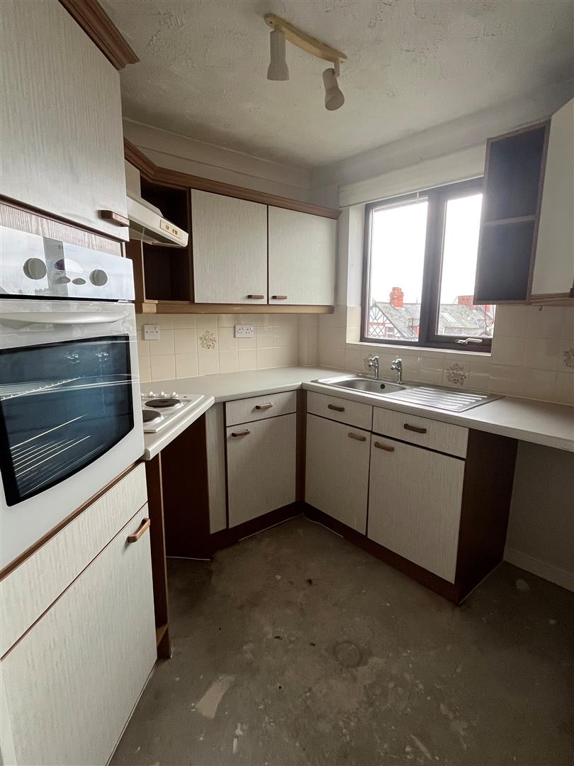 Kitchen - 2.74m x 1.52m 2.74m' (9' x 5' 9'') - Range of wall, base and drawer units with rolled edge worktops, built-in electric oven and 4 ring hob with extractor hood over. Part tiled walls. Space for fridge/freezer. Front aspect sealed unit double glazed window.