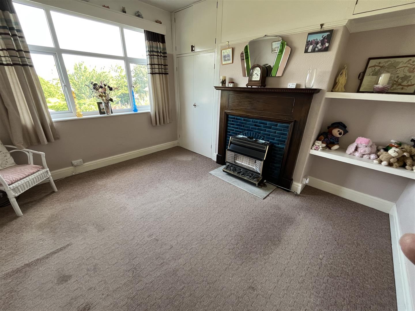 Dining Room - 3.9 x 3.2 (12'9" x 10'5") - Mahogany style fireplace surround with tiled back and gas fire, double door cupboard, central heating radiator, double glazed