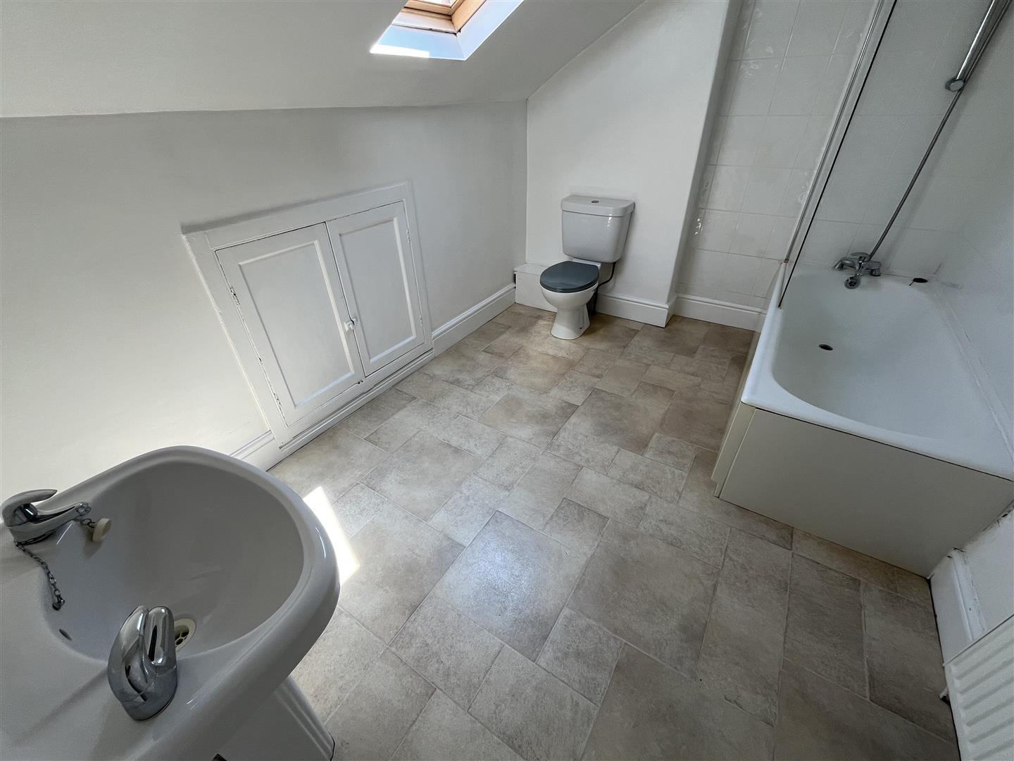 Bathroom - 3.02 x 2.4 (9'10" x 7'10") - Panel bath, shower taps and screen, double glazed velux, w.c, wash hand basin, central heating radiator