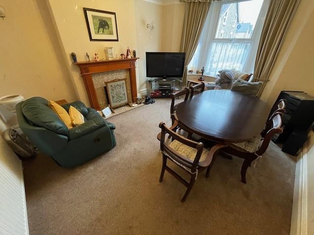 Lounge Or Dining Room - 4.5 x 3.6 (14'9" x 11'9") - Double glazed bay window, coved ceilings, central heating radiator, fireplace surround with marble back and hearth, living flame gas fire