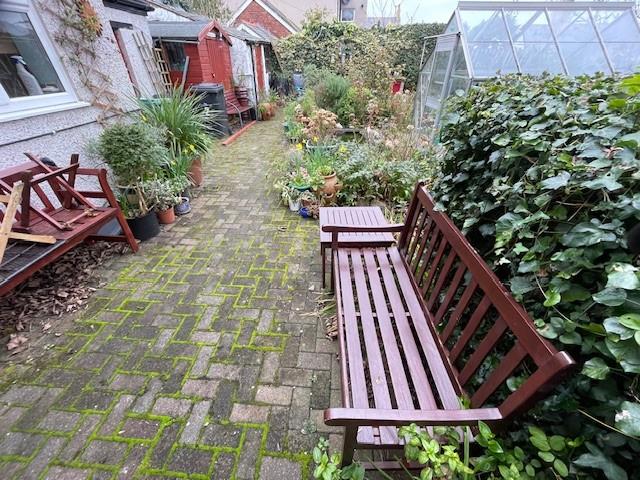 Outside - The property is approached by a series of stones steps. To the side of the house is a large garden area with pathways, hedges, flower borders, quite private. At the back of the house is an outside W.C, Store, Garden Store, Greenhouse and Brick Store