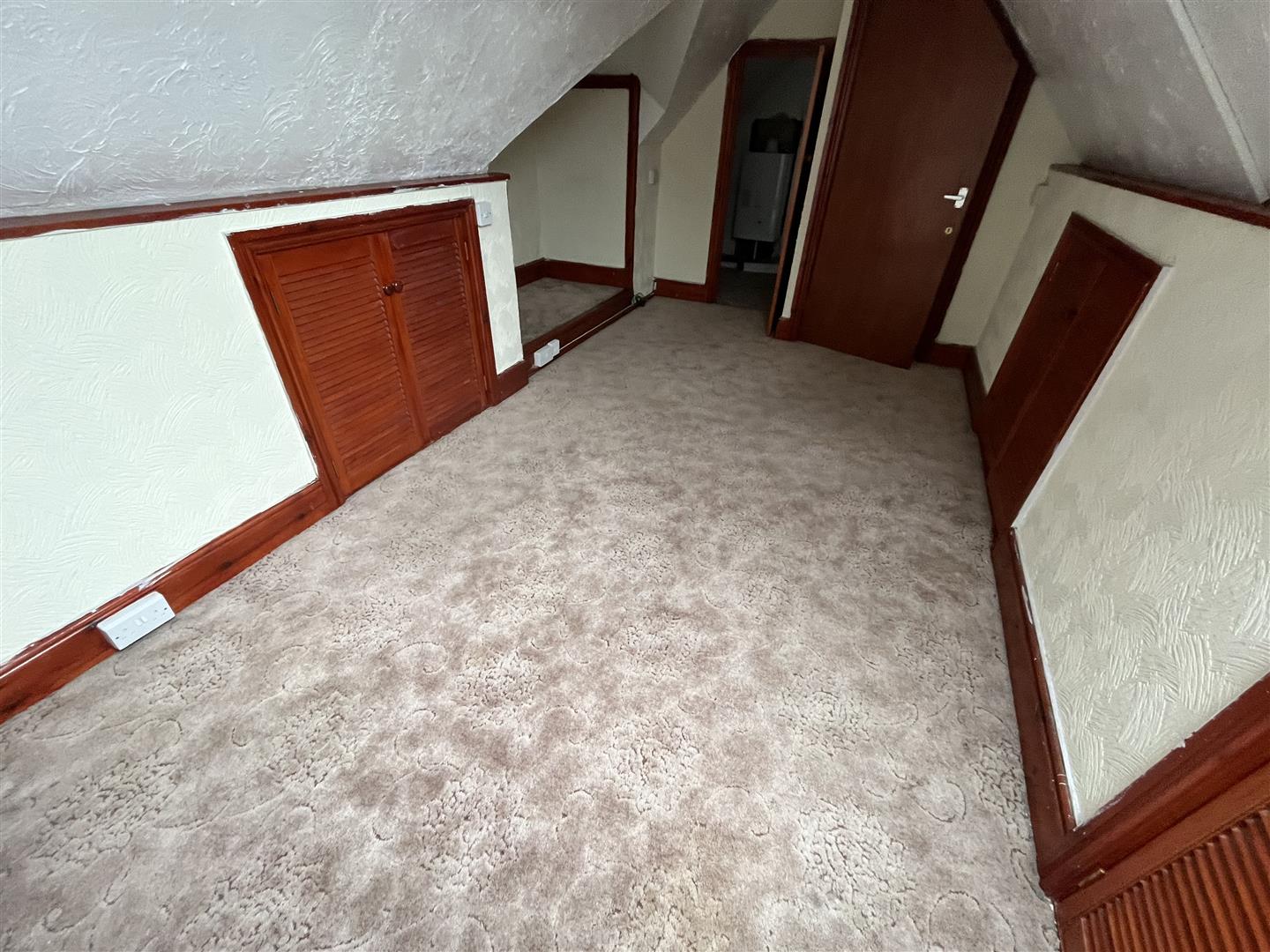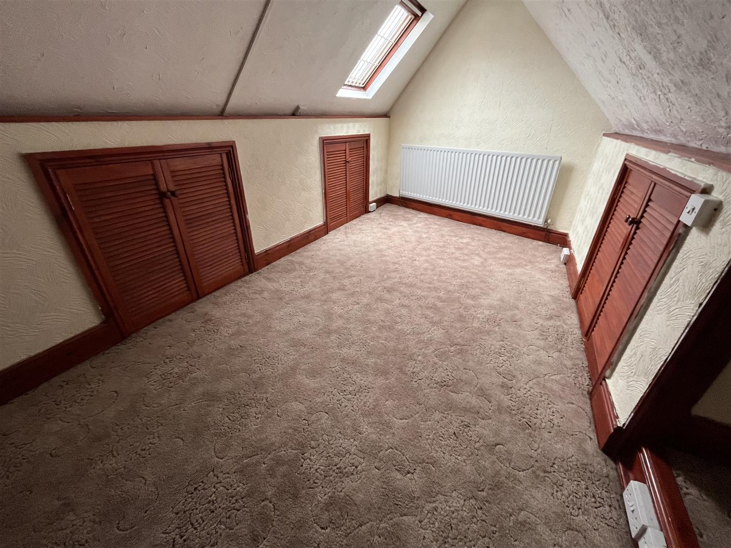 Bedroom 2 - 4.60m x 3.56m (15'1 x 11'8) - Double glazed velux window, 3 double door louvre roof void cupboards, storage alcove, walk in airing cupboard and gas central heating boiler