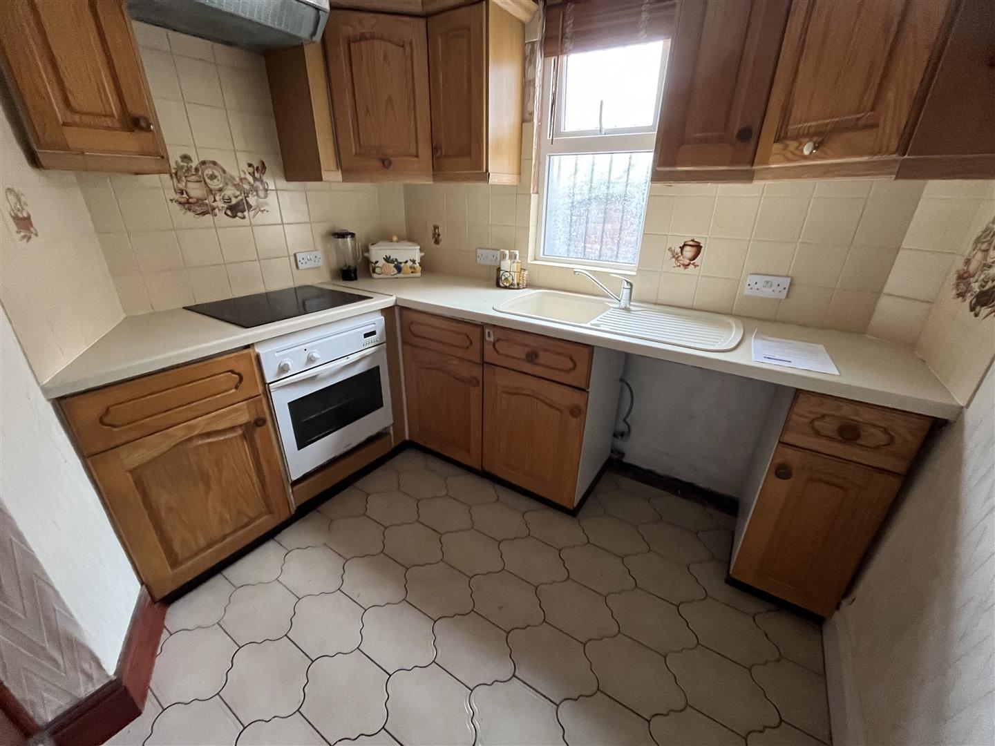 Kitchen - 2.54m x 2.11m (8'4 x 6'11) - Single drainer sink unit, double glazed, base cupboards, 4 ring electric hob unit and oven, cooker extractor hood, central heating radiator, 3 steps up to half landing