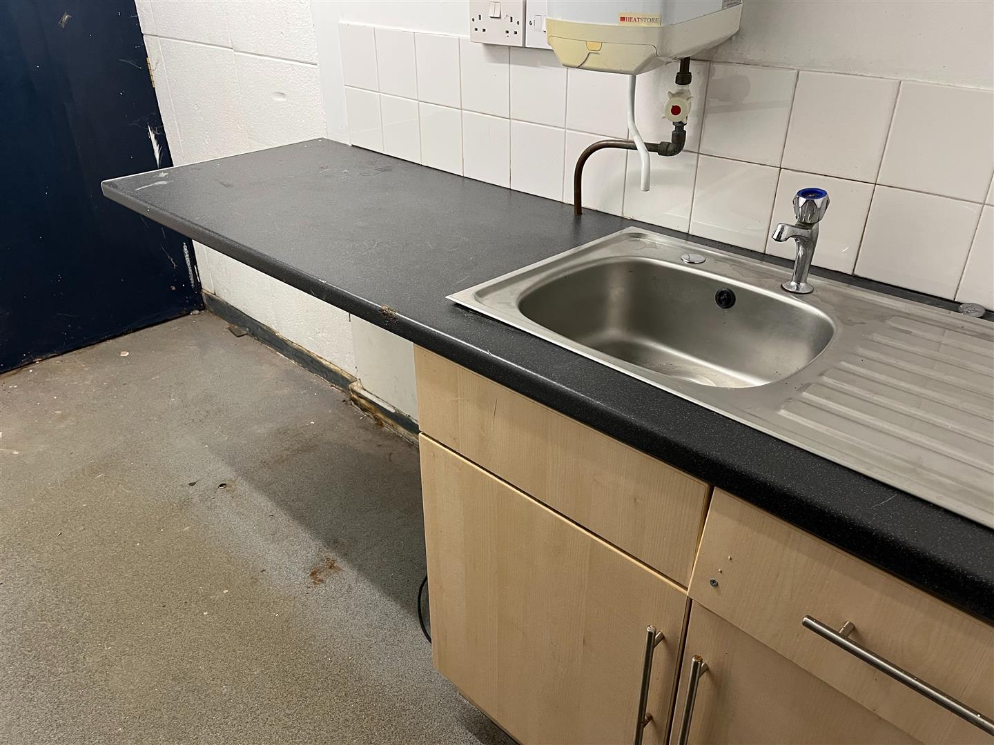 Kitchen - 3.20m x 1.65m (10'6 x 5'5) - Stainless steel sink unit, hot water heater, base cupboards