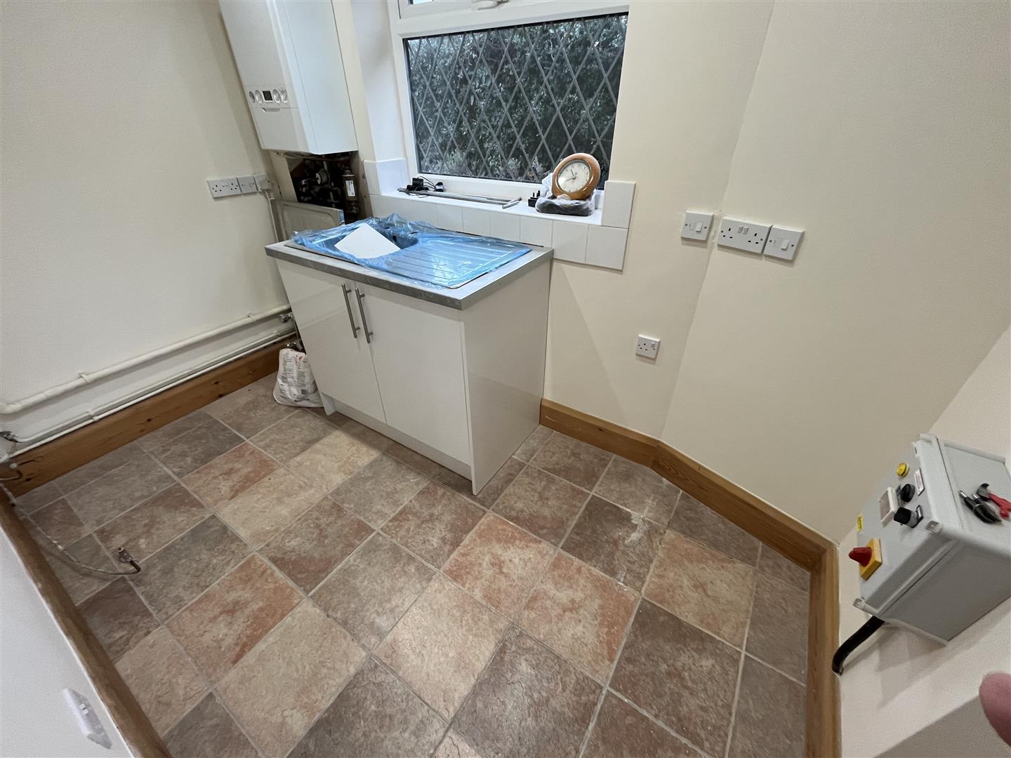 Utility Room - 3.02 x 1.8 (9'10" x 5'10") - Stainless steel sink unit, double glazed leaded window, plumbing for washing machine, gas central heating boiler, central heating radiator, double glazed door