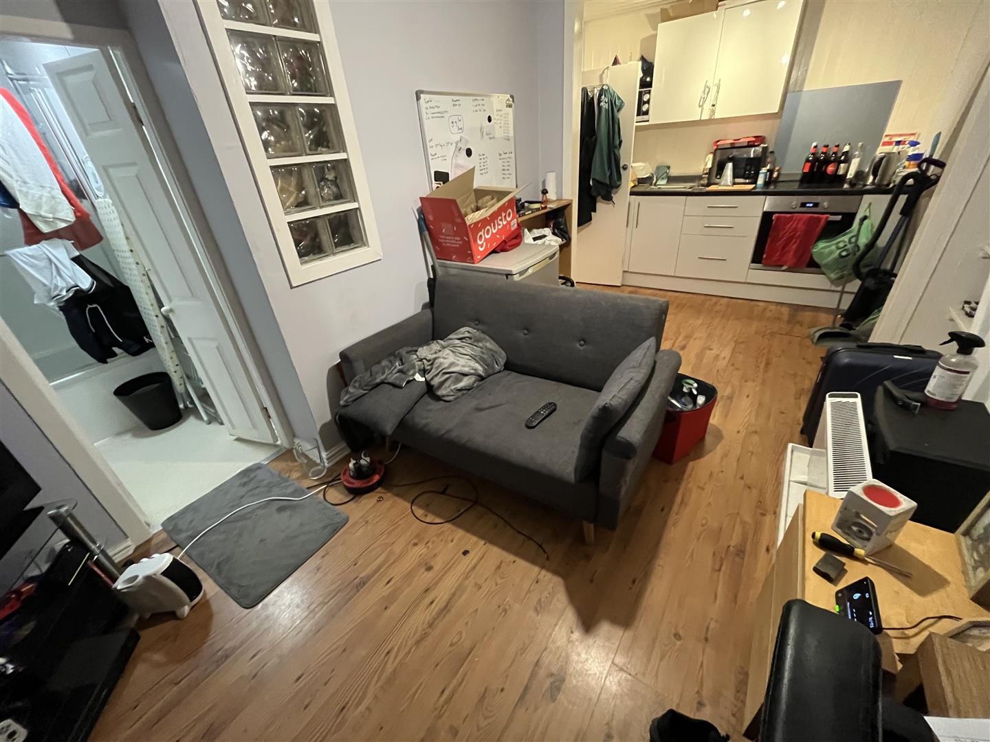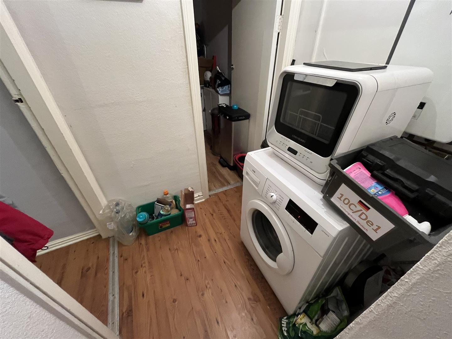 Flat 3A And Hall - Central heating radiator, laminate flooring, double door utility cupboard and gas central heating boiler, plumbing for washing machine
