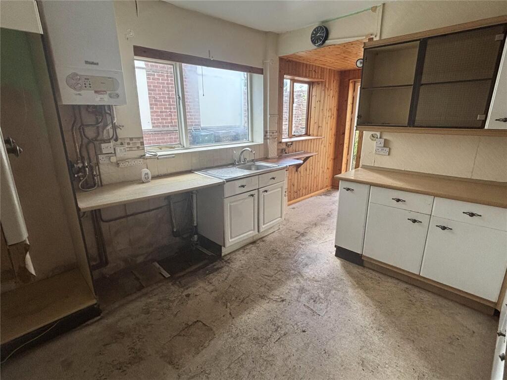 Kitchen - 5.3 x 3.3 (17'4" x 10'9") - Stainless steel sink unit, 2 double glazed windows and french doors to rear garden, wall and base cupboards, central heating radiator, gas central heating boiler, built in oven and hob