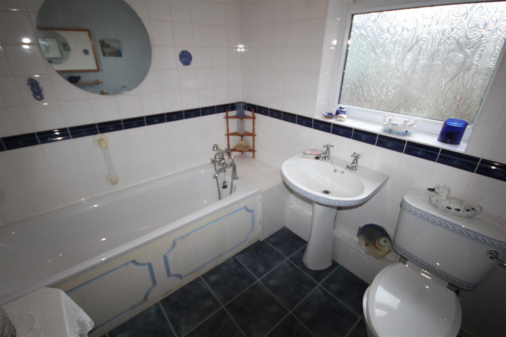 Bathroom - 2.2 x 2.04 (7'2" x 6'8") - Panel bath, pedestal wash hand basin, w.c, tiled walls, double glazed, central heating radiator