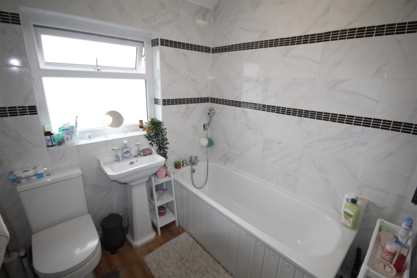 Bathroom - 2.7 x 2.05 (8'10" x 6'8") - Panel bath, double shower cubicle and unit, laminate flooring, double glazed, pedestal wash hand basin, w.c, tiled walls, heated towel radiator,