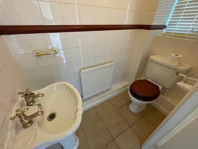 Cloakroom - W.C, wash hand basin, tiled floor, double glazed, tiled walls