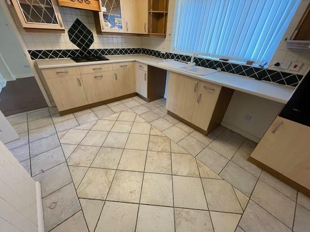 Kitchen Breakfast Room - 3.8 x 2.6 (12'5" x 8'6") - Single drainer sink unit, tiled floor, maple style base cupboards and drawers with cream work top surfaces, Zanussi dishwasher, 4 ring gas hob unit, built in double oven, double glazed window, central heating radiator, tiled walls, wall units, cooker extractor hood, under stairs cupboard