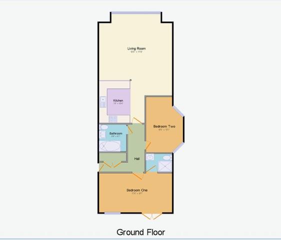 Bedroom - 5.7 x 2.7 (18'8" x 8'10") - Double glazed french doors to balcony, central heating radiator