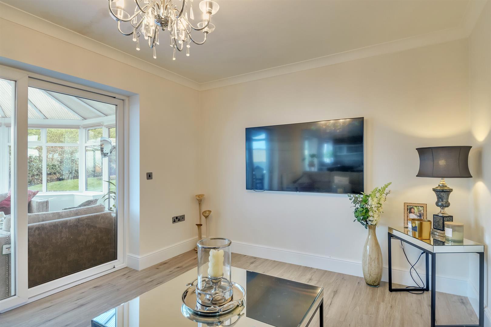 Living Room - 4.2 x 3.1 (13'9" x 10'2") - Wood grain style flooring, double glazed patio doors to rear gardens, central heating radiator, coved ceilings