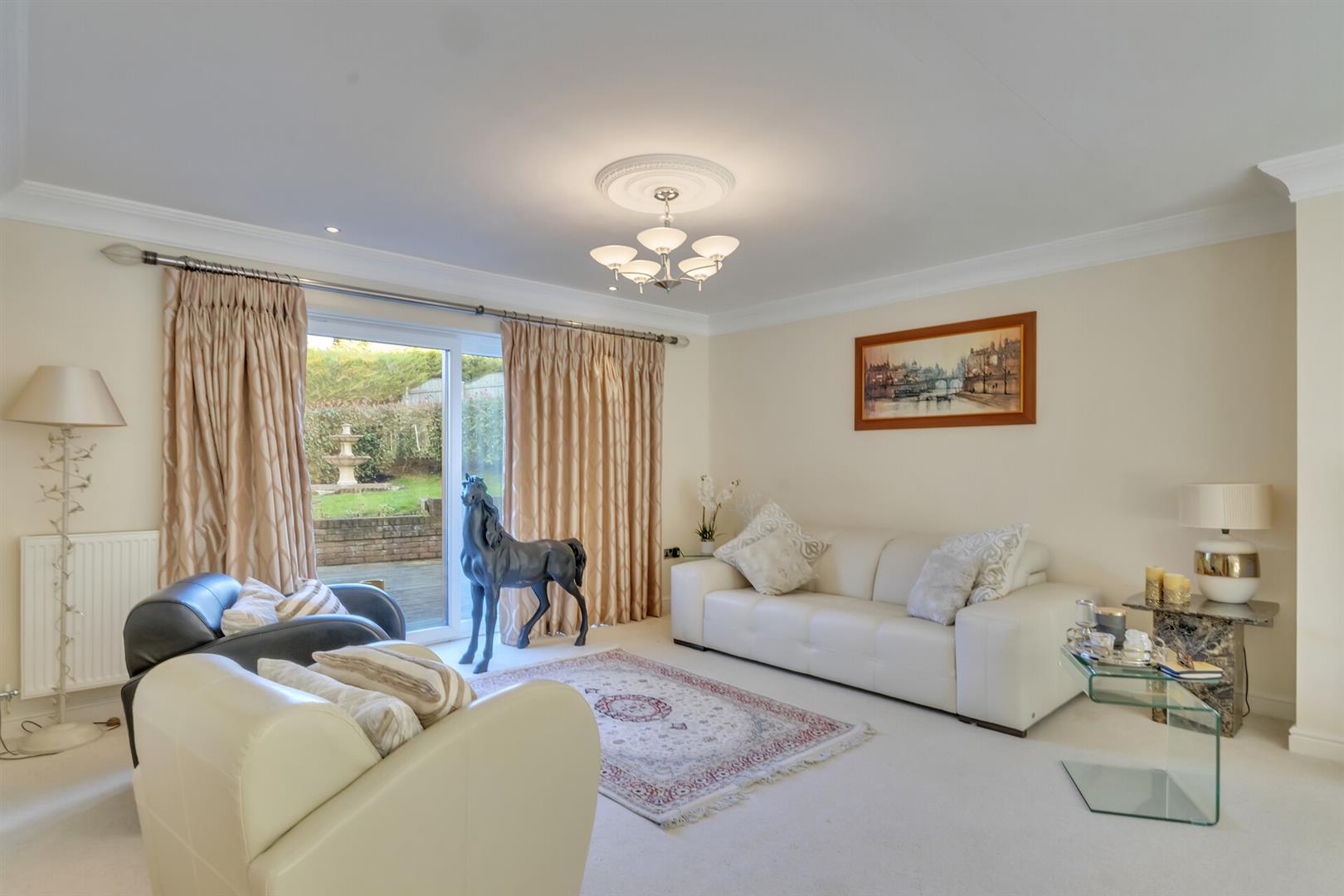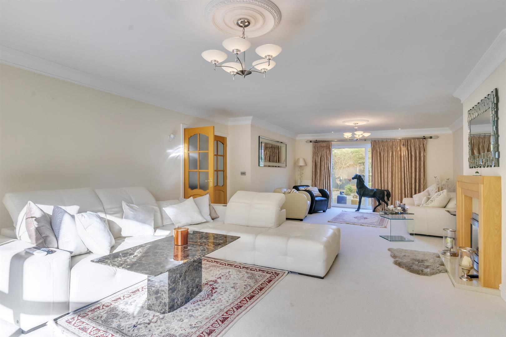 Superb Lounge - 10 x 5.9 (32'9" x 19'4") - Double glazed picture window to front aspect, double glazed patio doors, oak fireplace and marble back and hearth, living flame log effect fire, coved ceilings, 2 central heating radiators