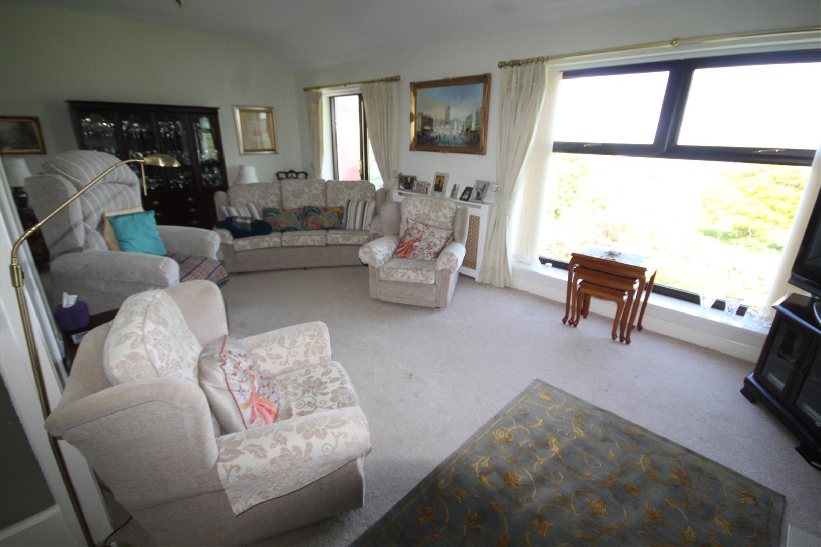 Large Lounge - 6.9 x 4.4 (22'7" x 14'5") - Double glazed picture window overlooking the panoramic views, 2 central heating radiators, fireplace with marble inset and hearth, electric fire